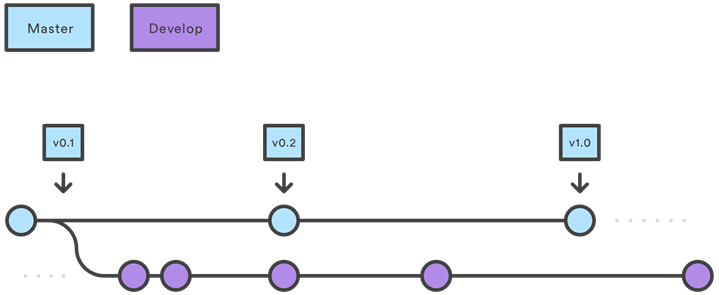 - main 브랜치를 분기로 develop 브랜치를 만듦