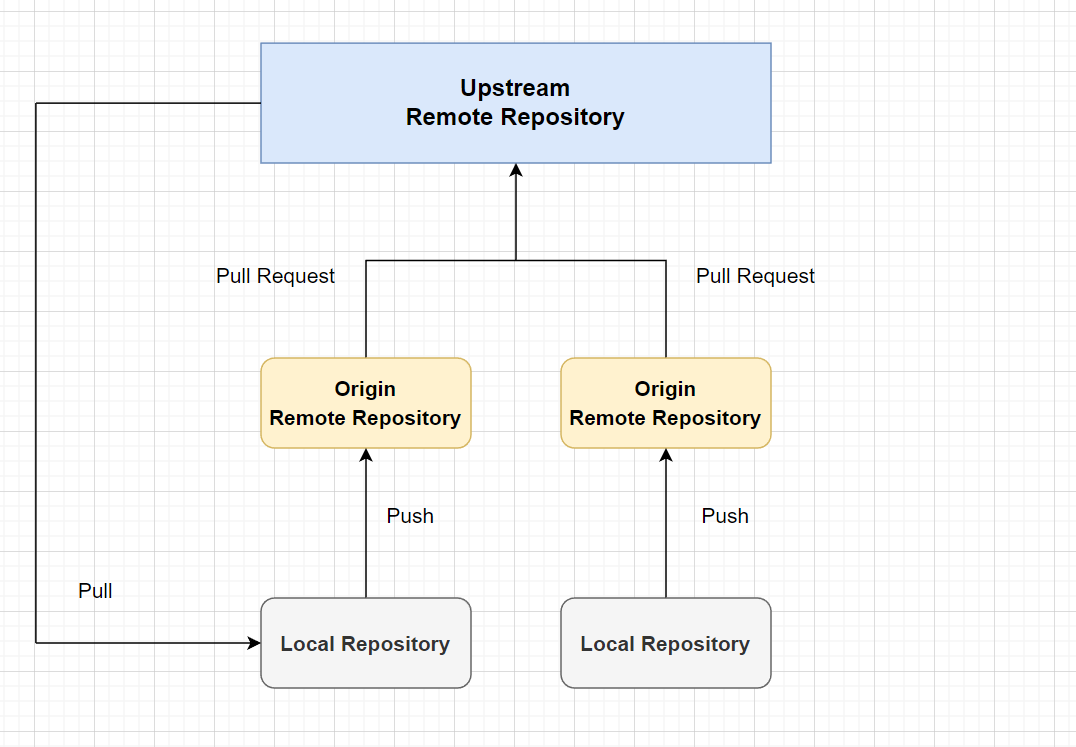 Upstream Remote Repository: 팀원들이 공유하고 있는 최신 코드가 저장되어 있는 원격 저장소