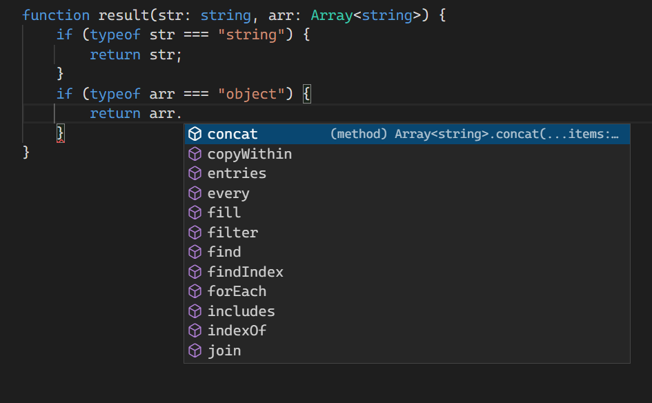 - 조건문 안에서 매개변수 arr 타입이 배열(object)이므로 배열 메서드를 사용할 수 있다.