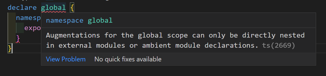 augmentations for the global scope can only be directly nested in external modules ts(2669)